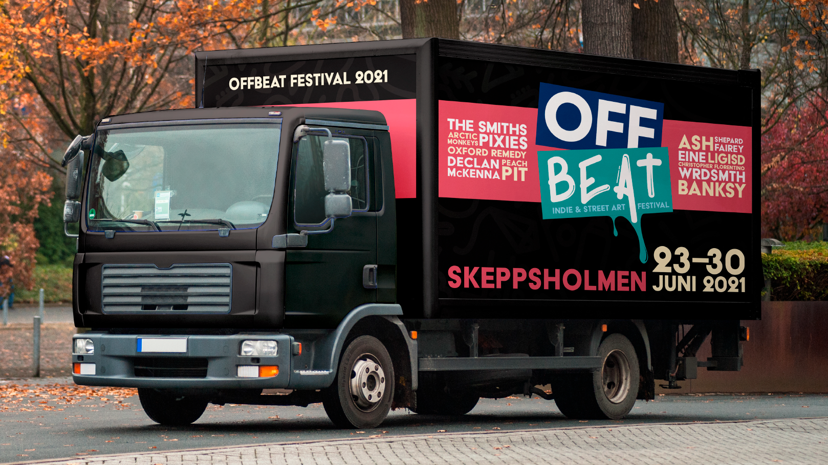 En skoluppgift då vi i grupp skulle ta fram ett koncept för en festival på Skeppsholmen, där flera olika digitala assets skulle ingå. Vi skapade Offbeat, en festival som blandar indiemusik med gatukonst.